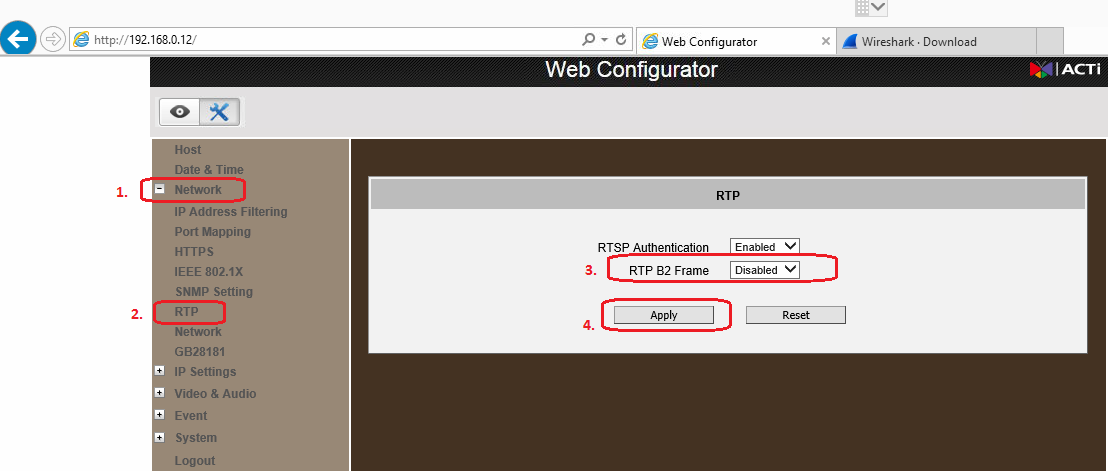 Cause : NUUO NVR cannot recognize the “B2 frame” format of ACTi camera. Please disable B2 frame in camera web page "Network"(the path may be difference which depends on ACTi camera model). |