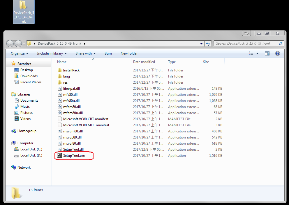 3. For Mainconsole, please download and decompress Device Pack file. Find and execute "SetupTool.exe" in decompressed Device Pack folder. Follow instructions to complete Mainconsole Device Pack upgrade.