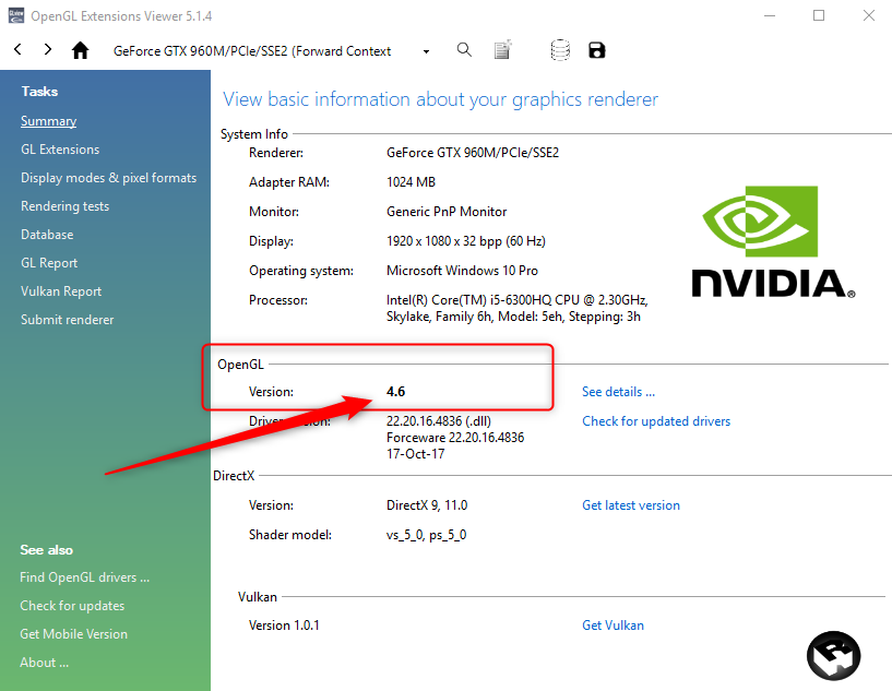 你可以透過下載第三方軟體"OpenGL Viewer"來檢查目前電腦上所使用的OpenGL版本,下載連結如下: