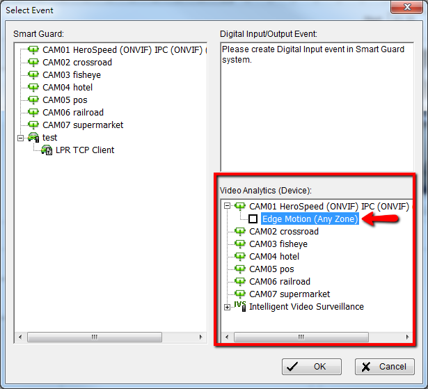 - Select "Edge Motion" under [Select Event] popup window: