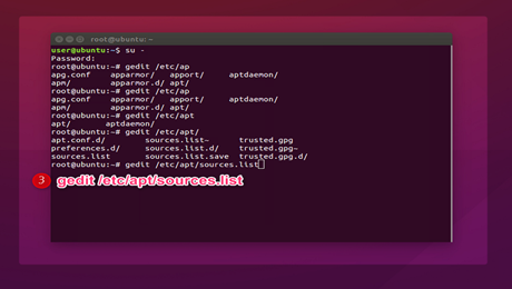 2.3. Input gedit /etc/apt/sources.list