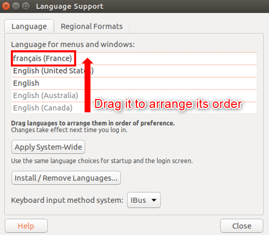 3.5. Drag installed language to the top of the list